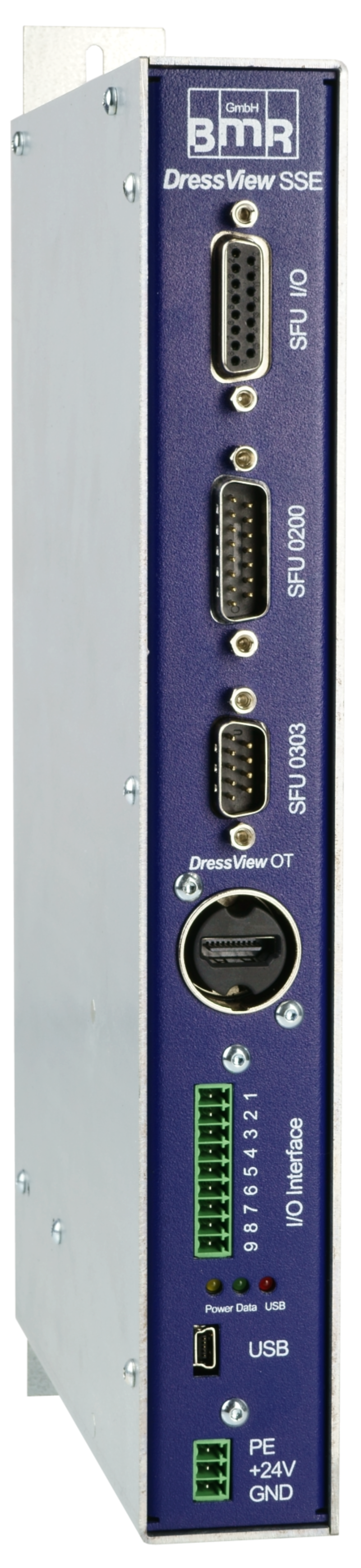 Das OperatingTerminal lässt sich wahlweise über eine VESA-konforme Halterung an Ihrer Maschine, oder einem Arm anbringen, sowie als handliches Tischgerät auf eine waagrechten Oberfläche stellen.Zugehörig zum OperatingTerminal ist das DressView® SSE Schaltschrankgerät. Dieses stellt die Spannungsversorgung sicher und sämtliche Ein- und Ausgänge zur Verfügung. Zusätzlich bietet es eine USB-Schnittstelle zum benötigten BMR-Umformer.