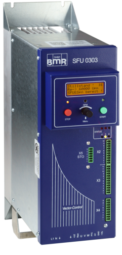 Der Vielseitigste unter den BMR-Umrichtern – die Power-Lösung für alle Arten von Spindeln variable Zwischenkreisspannung für optimale Spindelspannung, dadurch beste Regelung und Laufkultur, sowie niedrigste Erwärmung der Spindel erspart in den meisten Fällen Sinusfilter oder Ausgangsdrossel, auch problemloser Betrieb von Niedervoltspindeln möglich galvanische Trennung der I/Os zu Netz- und Spindelanschluss Integrierter BremsChopper-Widerstand 200 W automatische Spindelbremsung bei Netz-Aus während des Betriebs Impulssperre, optional als Safe Torque Off verfügbar in der Schaltschrankausführung (SSE) mit optionalem Bedienpanel, außerdem als Tischgerät oder 19"-Version